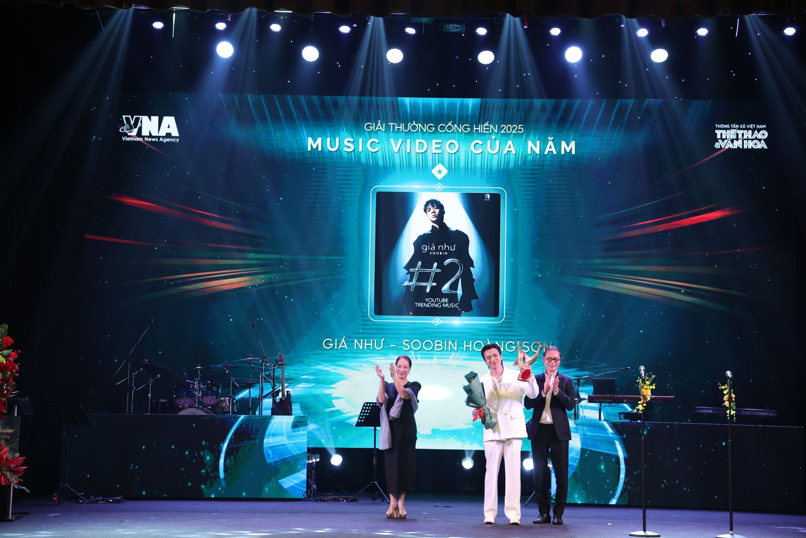 Tiến sĩ Ngô Phương Lan, Chủ tịch Hiệp hội Xúc tiến Phát triển Điện ảnh Việt Nam và Nhà báo Đinh Trọng Tuấn trao giải “Music Video của năm” cho SOOBIN tại Cống hiến 2026